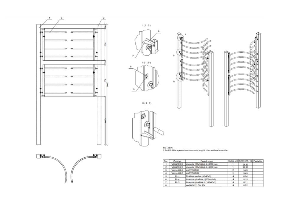 Stačiakampiai ir apvalūs metaliniai stulpai